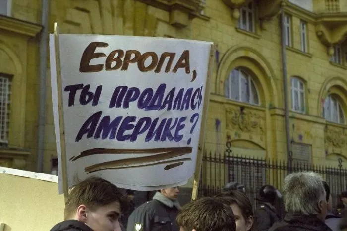 13. Демонстрация протеста против НАТОвской агрессии в Югославии у посольства США в Москве.
