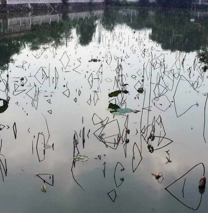 Краска потрескалась на солнце, и знак стал похож на мозаичный узор