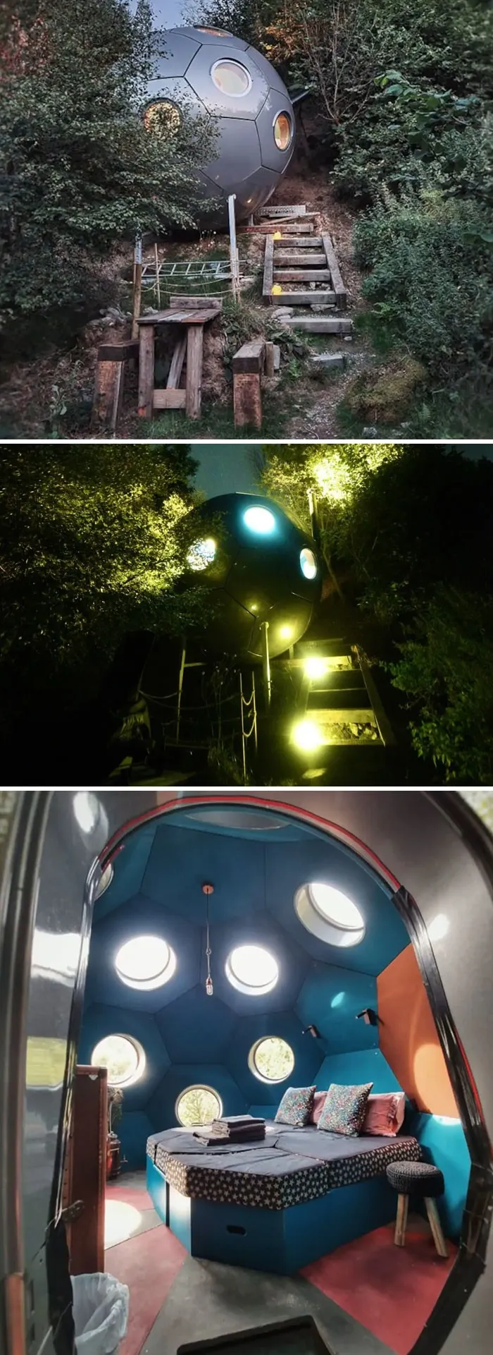 32. Уникальная капсула в деревьях на берегу реки. Лланафан-Фаур, Уэльс, Великобритания