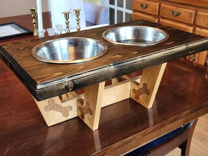 25. Сосновая подставка для собачьих мисок
