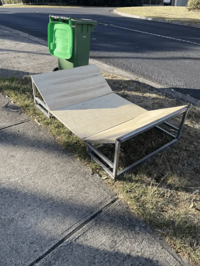 Явно самодельный сварной металлический каркас с тремя нелакированными фанерными панелями. Для чего это?