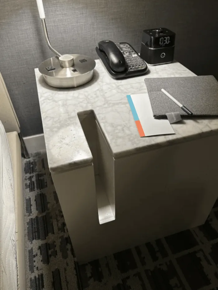 Для чего нужна вертикальная прорезь в прикроватной тумбочке отеля?