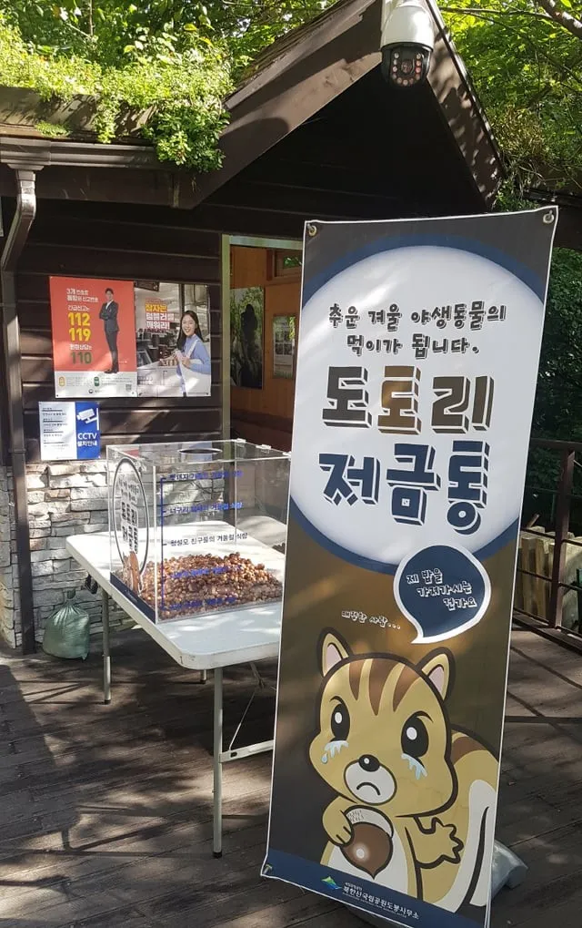 6. В Корее заботятся о животных, потому на входе в парк есть табличка, что орехи/жёлуди брать нельзя, так как белкам зимой нечего есть