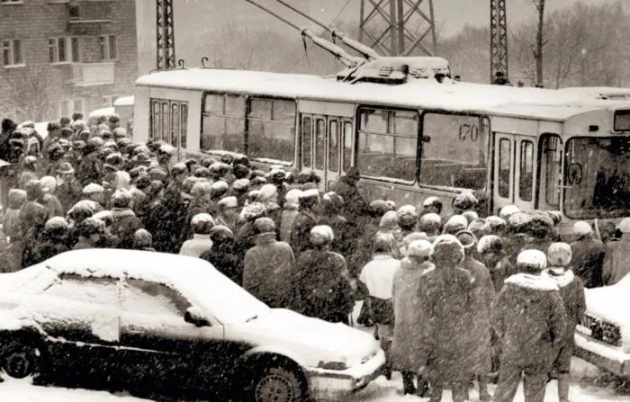 6. В ожидании посадки на троллейбус, Владивосток, 1994 год