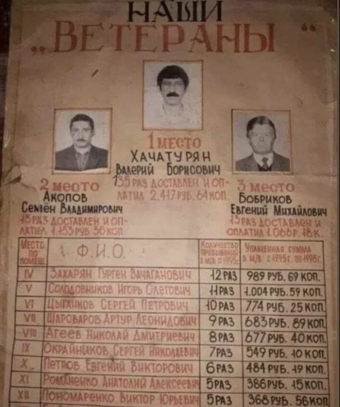 10. "Доска почета" пятигорского вытрезвителя, 1995-98 года