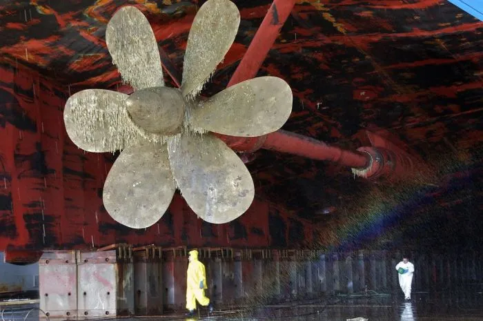 20. Крюк крана рядом с рабочим на морской буровой установке
