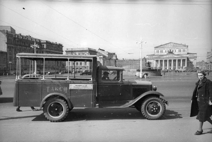 Такси на площади Свердлова (Театральная площадь). Москва, 1945 - 1949г.г.