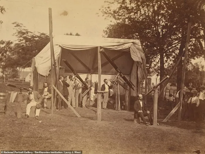 18. «Группа наблюдателей из Гарвардского университета фотографирует затмение». Снимок 1869 года
