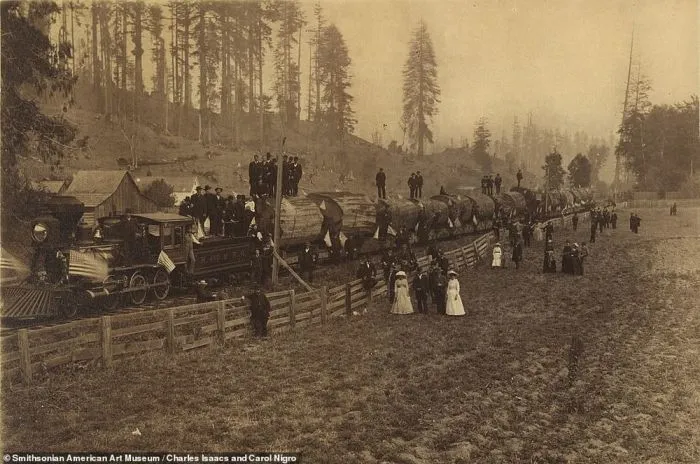 20. Нагруженный бревнами поезд длиной 88 568 футов (26 995 метров), местонахождение неизвестно. Фото 1885 года