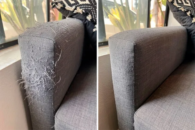 Использовал триммер для бороды, чтобы удалить затяжки от кошачьих когтей с моего дивана