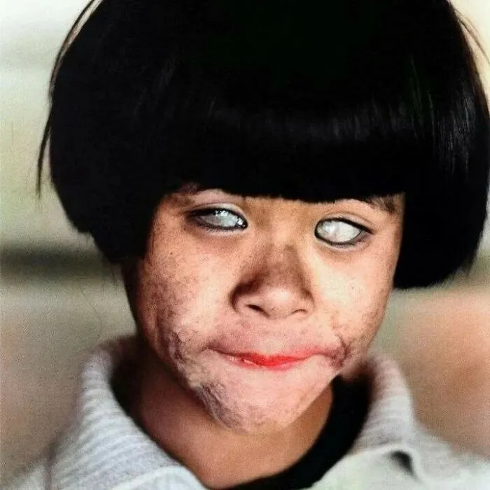 Портрет ослепшей японской девочки, которая лишилась зрения, став очевидицей атомной бомбардировки Хиросимы 6 августа 1945 года.
