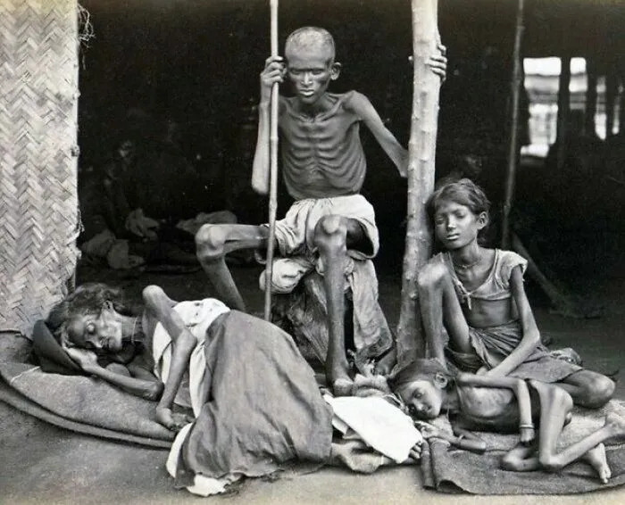 29. Мужчина охраняет свою семью от каннибалов во время Великого голода в Индии, 1877 год