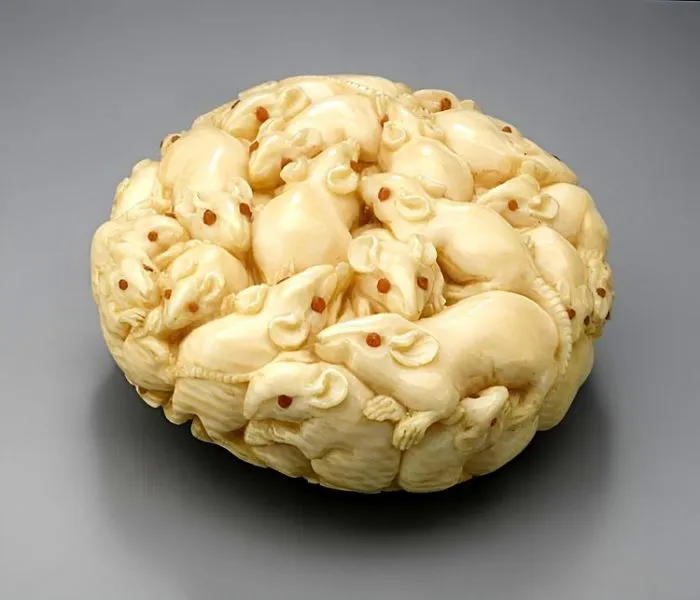 Японская нэцкэ (миниатюрная скульптура) из слоновой кости, изображающая клубок крыс, 19 век