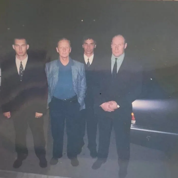 15. Фото на память. Михаил Задорнов с поклонниками. Россия, 1999 год.