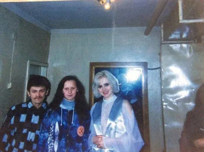 14. Ведущая программы «Партийная зона» на телеканале «ТВ-6» Лера Кудрявцева с группой «Блестящие». Москва, 1997 год.