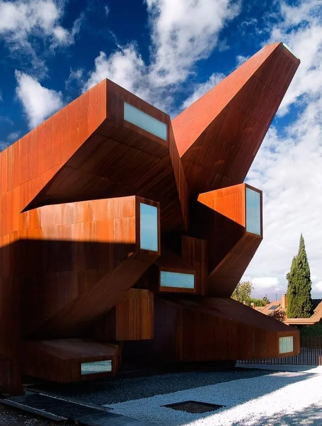 Необычный храм возведён из 100 слоёв кортеновской стали. Сложенные друг на друга листы, образуют иллюзию, которая в зависимости от угла зрения кажется полноценным зданием или невесомой конструкцией, которая практически полностью растворяется в окружающей среде.
