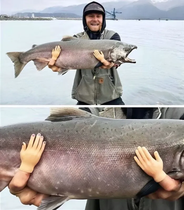 Даже имея кукольные руки этот парень смог поймать огромную рыбу