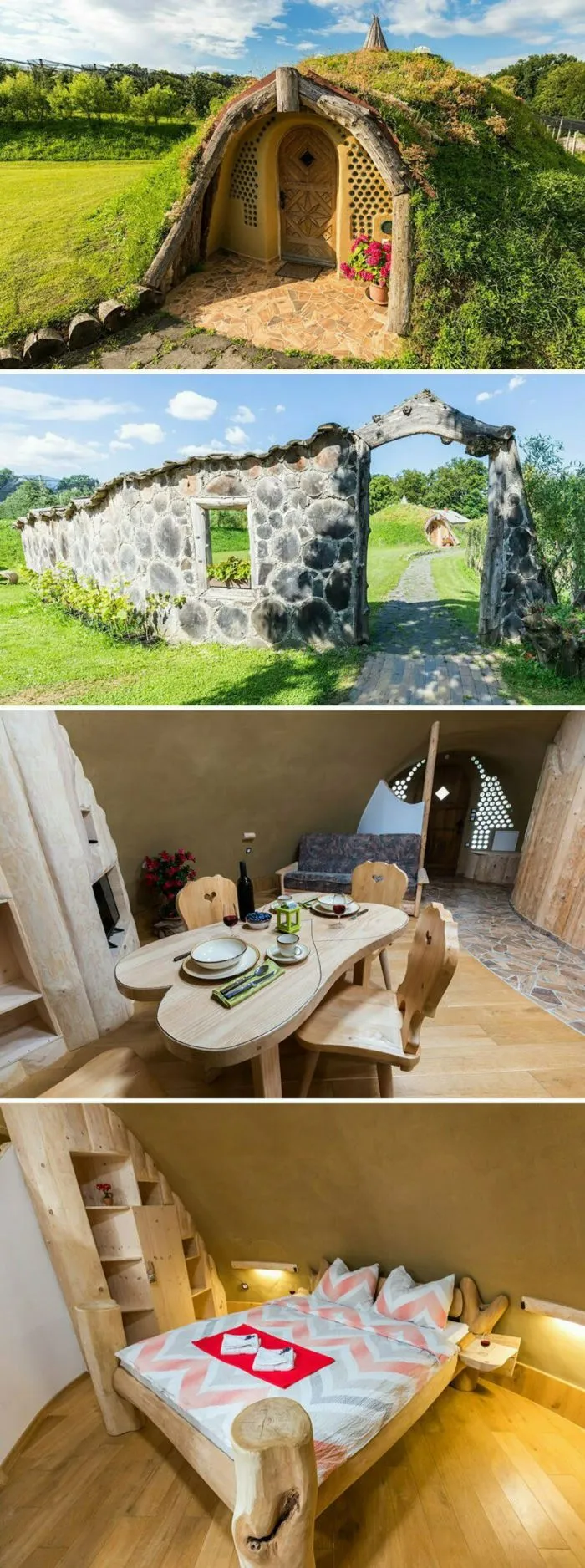 Домик, похожий на нору хоббита, в городке Лютомер в Словении