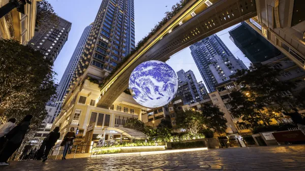 Плавающая Земля в Канэри-Уорф в Лондоне
