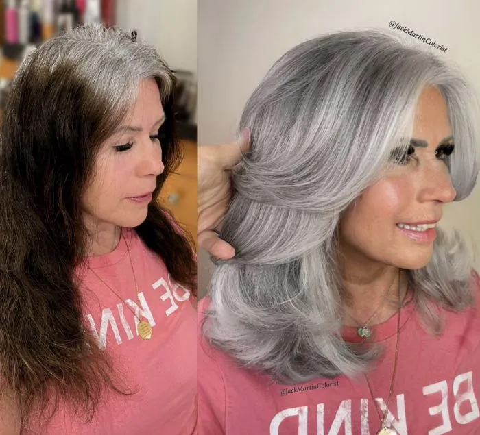 Он не маскирует седину и возраст, а подчёркивает красоту волос