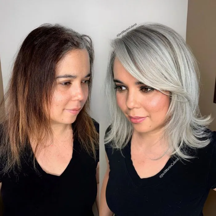 С помощью окрашивания "под седину" внешний вид женщин на 100% преображается.