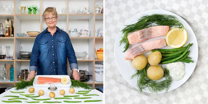 17. Бригитта, 70 лет, Швеция: Inkokt Lax (вареный холодный лосось и овощи)