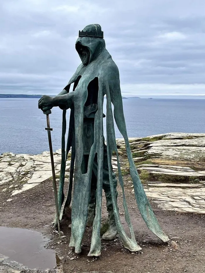 Статуя короля Артура возле замка Тинтагель в Корнуолле, Великобритания