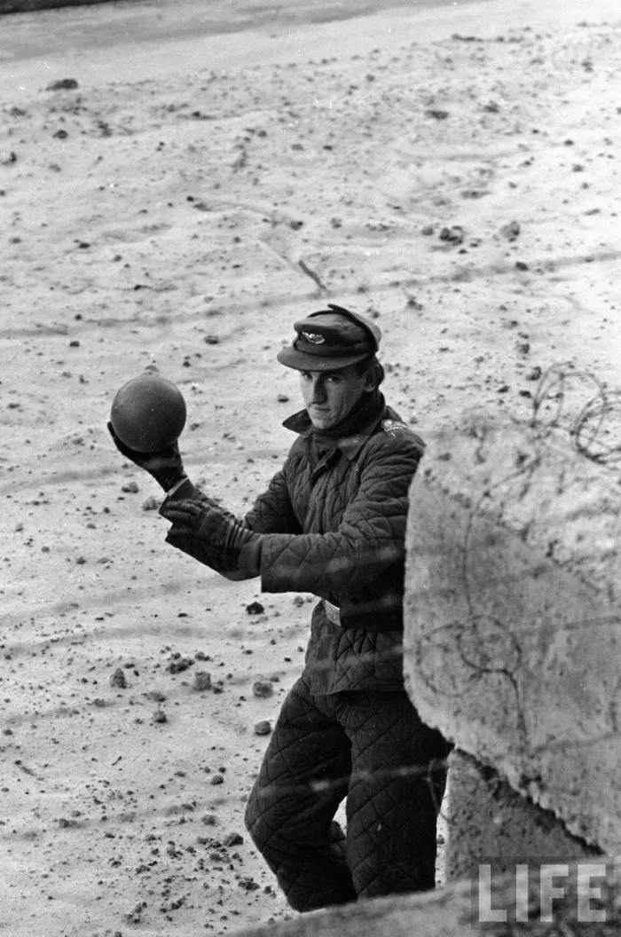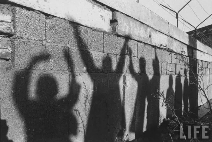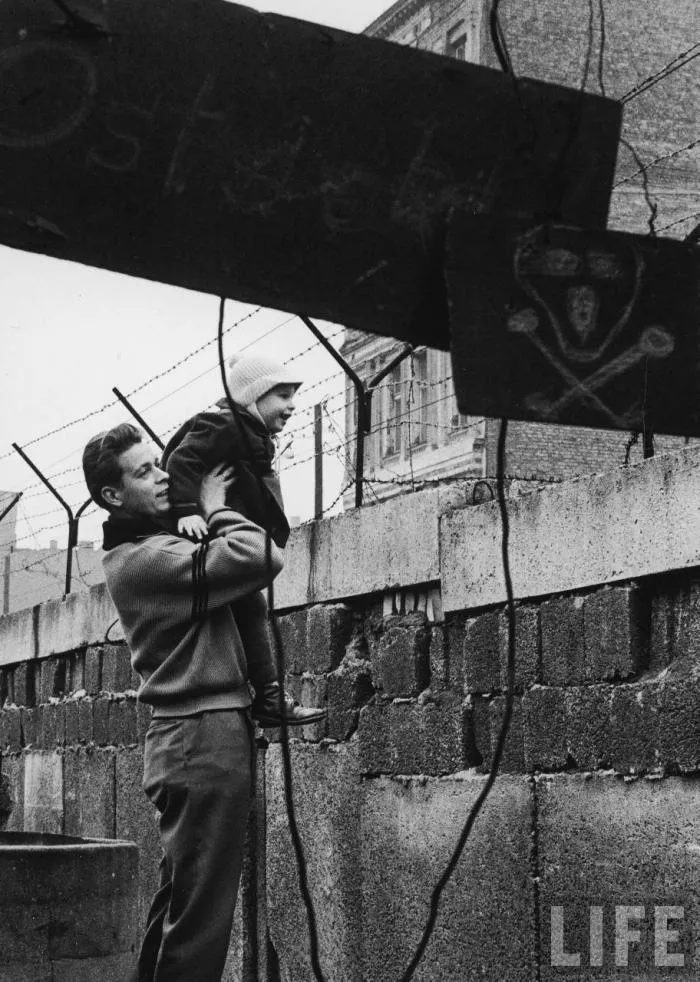 Не знаю, о чём думал фотограф делавший кадр, но мы точно видим, что он был не лишен художественного вкуса. Это силуэты людей в западном секторе, машущие своим родственникам в восточной части города. Как по мне вышло невероятно трогательно и стоит отдать должное человеку с камерой. Простой кадр, но за ним просматривается целая сложная история.