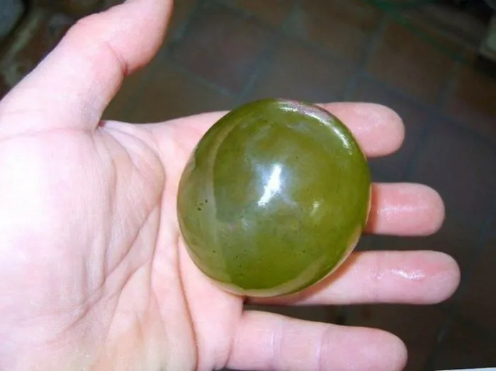 Это не гигантская виноградина, а валония пузатая — вид зелёных водорослей из семейства валониевых