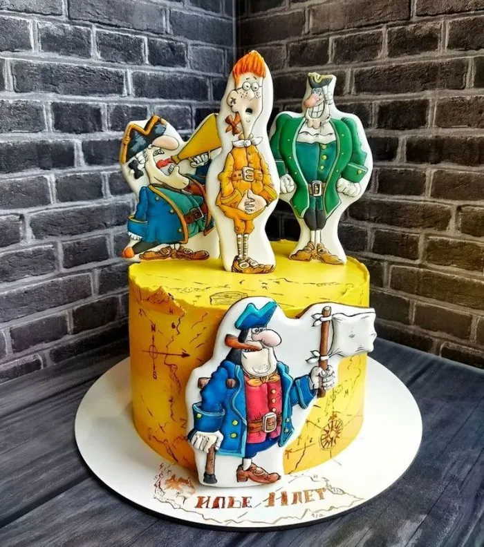 Пряники залиты в технике пайпинг, отрисованы с большим удовольствием. Само сокровище содержит карамель, фундук, шоколадный бисквит и сливочно-творожный крем!