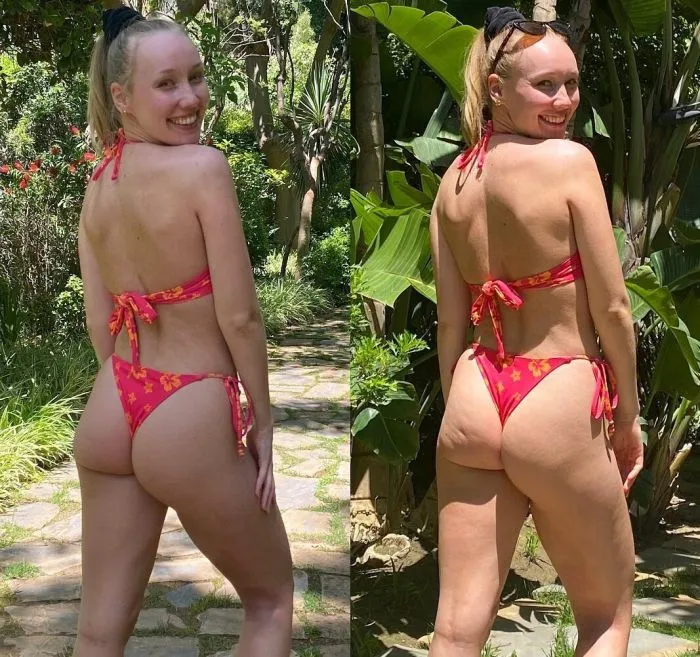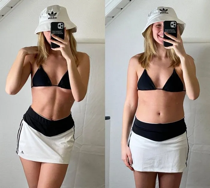 Она демонстрирует, что одно и то же тело может выглядеть по разному из-за позы и удачного света