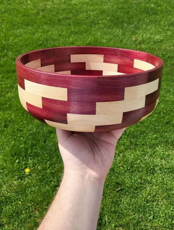 «Первый токарный проект. Миска из амаранта и сегментов из клёна»