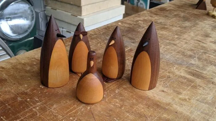 «Небольшая банда странных птиц в моей мастерской. Они довольно шумные и постоянно требуют рыбу»