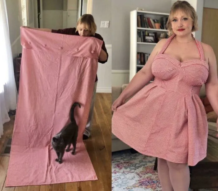 19. «Мама хотела выкинуть шторы, так что я сшила из них платье»