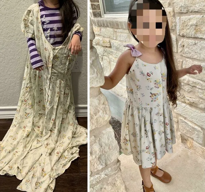 24. «У дочки новое платье. Я сшила его из старого, которое нашла за 50 центов на дворовой распродаже. Не идеально, но нам очень понравилось!»