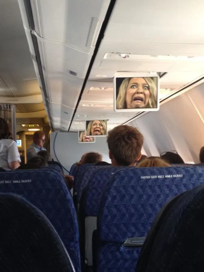 11. Объявление стюардессы застыло на телевизорах и напугало весь салон