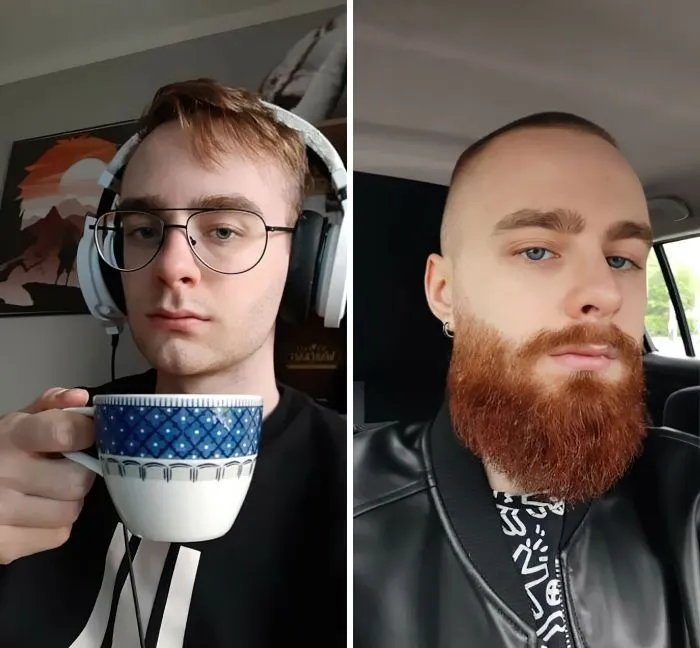 17. «До и после того, как я отрастил бороду. Разница между фотографиями — два месяца»