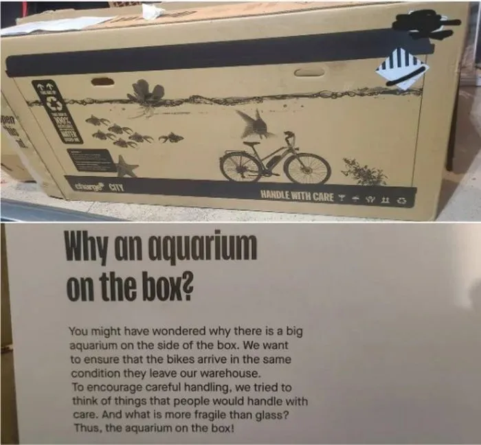 10. Компания отправляет клиентам велосипеды в коробках с нарисованным аквариумом, чтобы курьеры бережно обращались с грузом