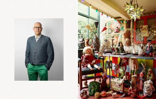 Саймон на протяжении многих лет собирает свою коллекцию исключительно на блошиных рынках. В неё входят различные жуткие раритеты и народное искусство.