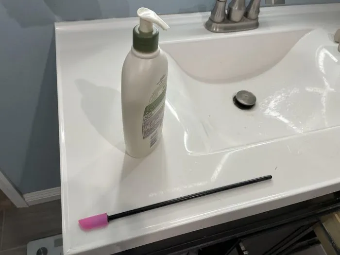 3. Моя жена с помощью небольшого шпателя вычерпывает остатки крема из тюбика