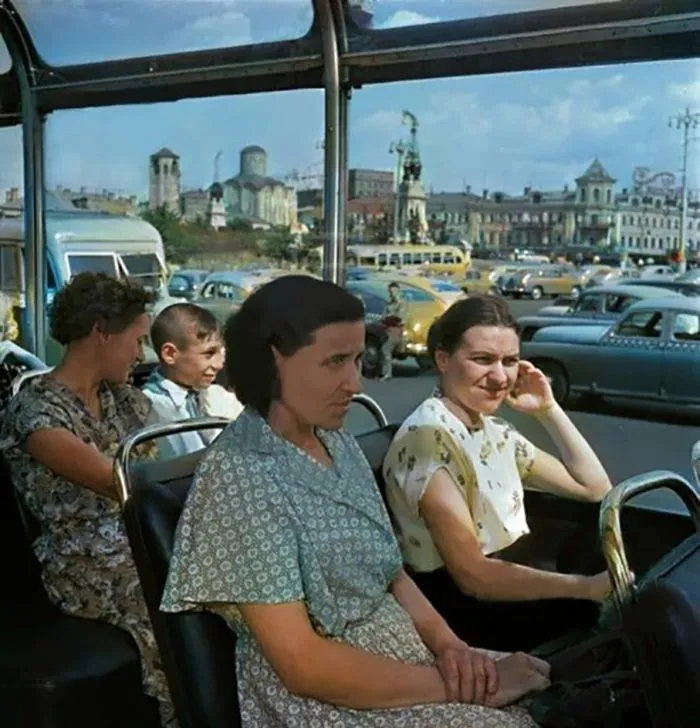 7. Пассажиры в троллейбусе на Тверской Заставе, 1956 год