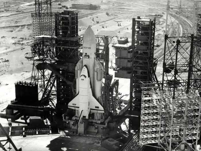 10. Советский космический корабль–челнок «Буран» перед запуском, 15 ноября 1988 года, Казахская ССР
