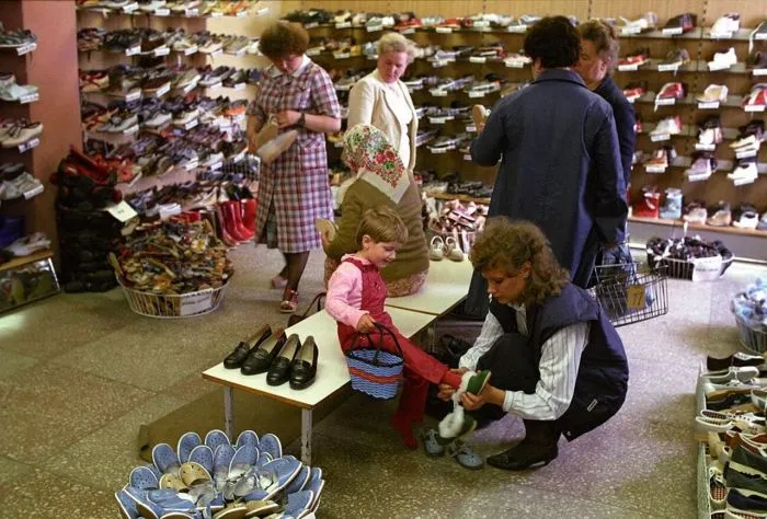 15. Примерка в обувном магазине города Советска в Калининградской области, 1988 год