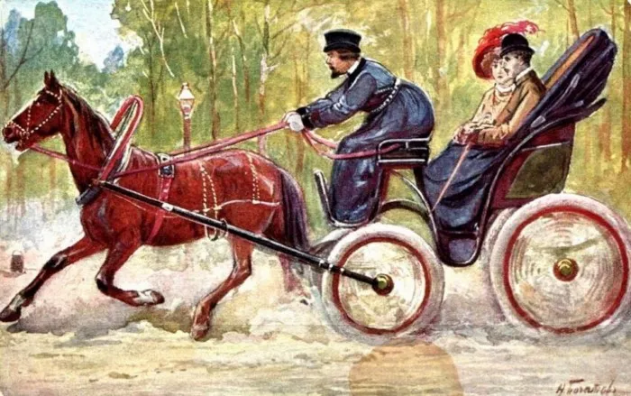 «На дутиках», 1910-е годы, бумага, акварель, частное собрание