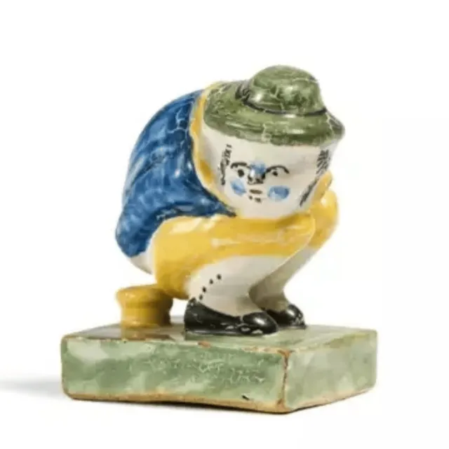 Фаянсовый человечек, сидящий на корточках на ночном горшке. Сделан в 18 веке в Нидерландах.