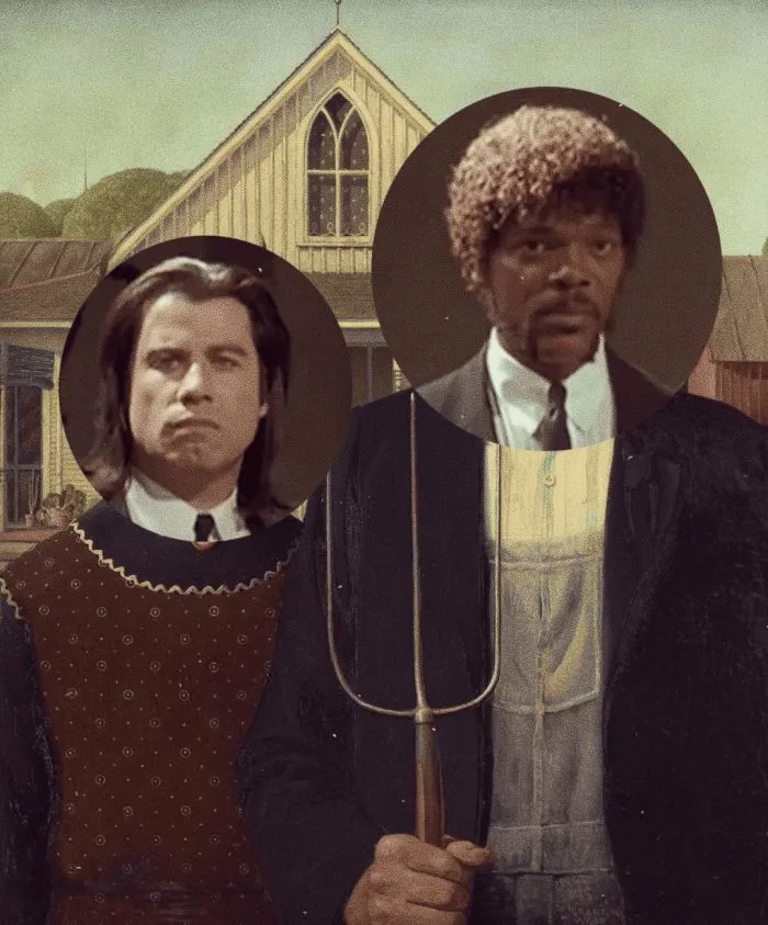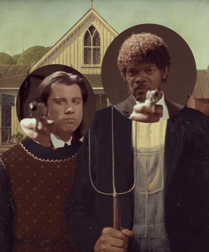 «Американская готика» Гранта Вуда + герои «Криминального чтива»