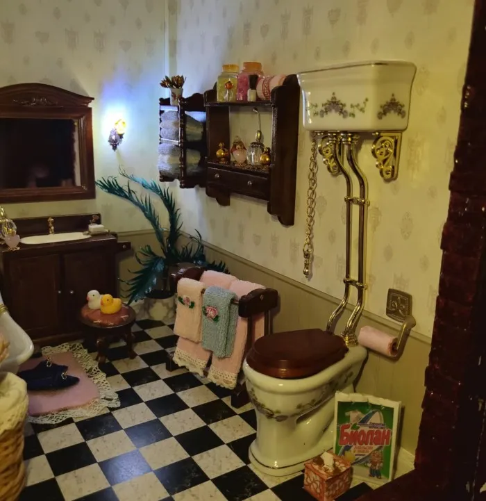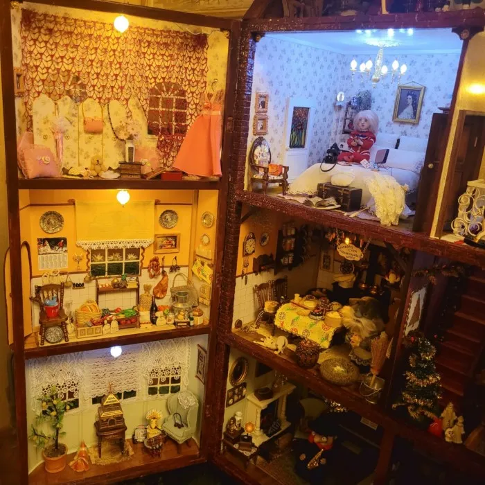 15 кг 'живого' веса, метр высотой, 8 комнат, жители из любимого детства, 54 предмета мебели, распашные дверцы, а уж вазонов, баночек и сервизного фарфора не сосчитать..