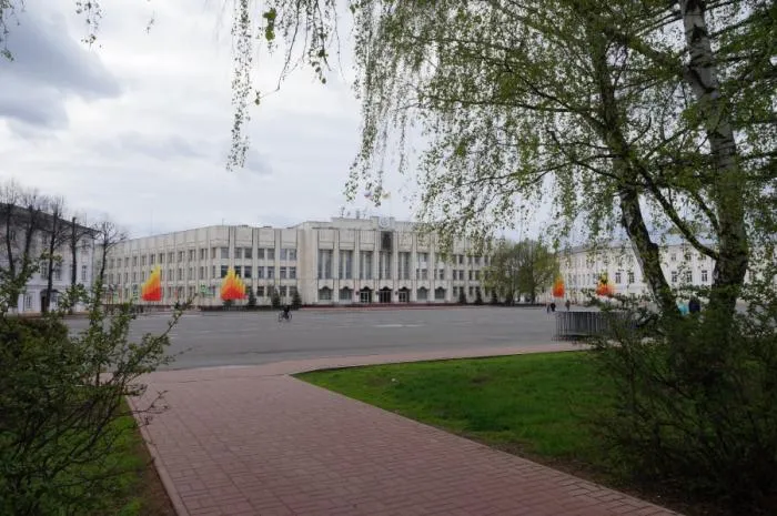 Располагается храм в центре площади, а напротив него стоит администрация области. Как по мне в данном случае советские архитекторы смогли грамотно вписать свой проект старую застройку, и администрация не довлеет над округой.