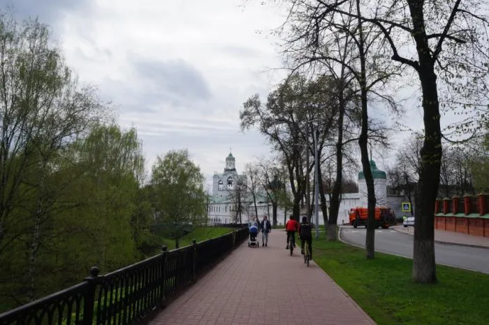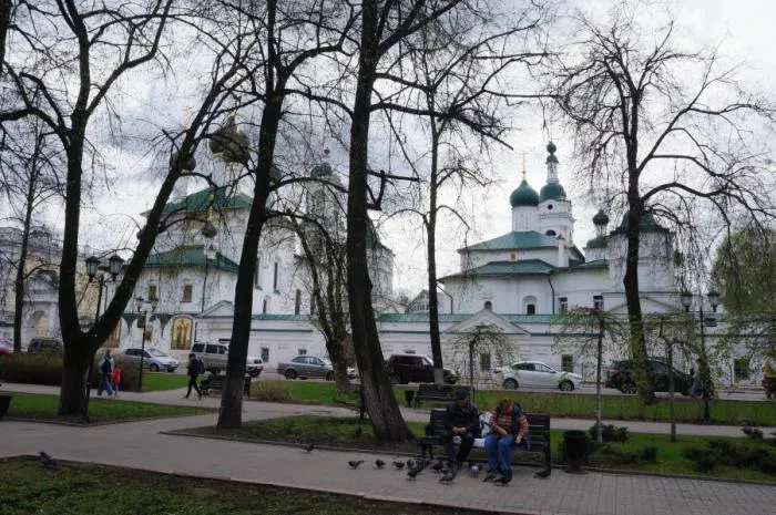 Ярославль сложный город и тут мне неоднократно приходилось раздумывать в какую сторону дальше идти. В данном случае мы свернули в Демидовский сквер, откуда открывается вид на монастырь 18 века. Названия большей части религиозных сооружений я не указываю, потому что всё равно же их сам и забуду.