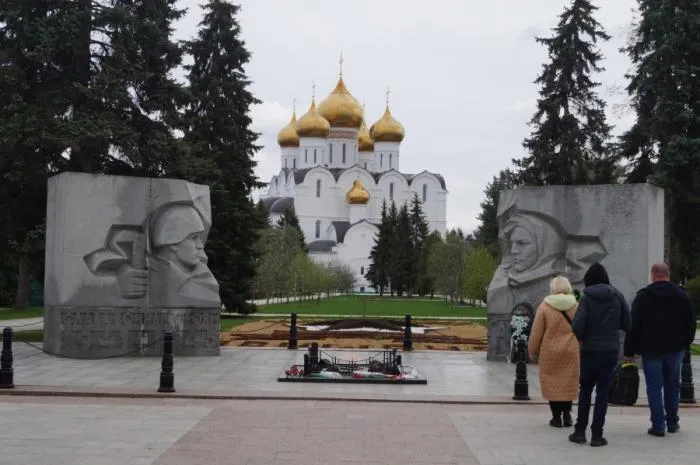 Учитывая давнюю историю города, то недостатка в различных памятниках и обелисках тут тоже нет. Внутри монастыря вот обнаружились Минин и Пожарский. Установлен памятник неспроста, потому что действительно в 17 веке ополчение этих ребят тут какое-то время находилось.